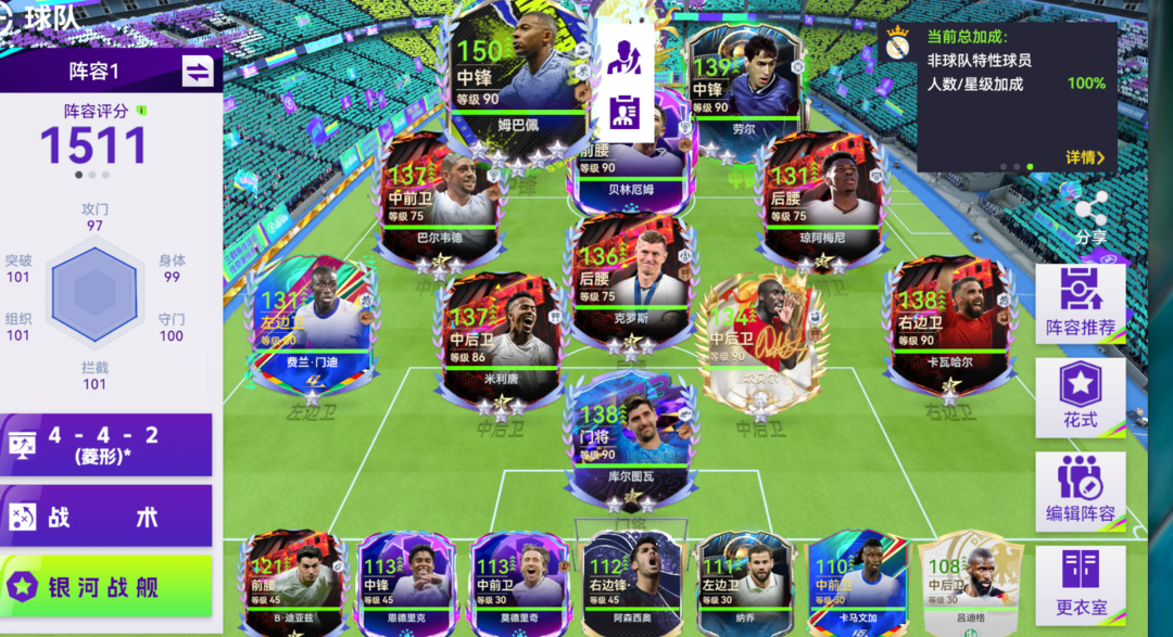 皇马队套、充值2w多、满星95毒液姆巴佩、93贝林、95卡瓦哈尔、超级无敌爽号