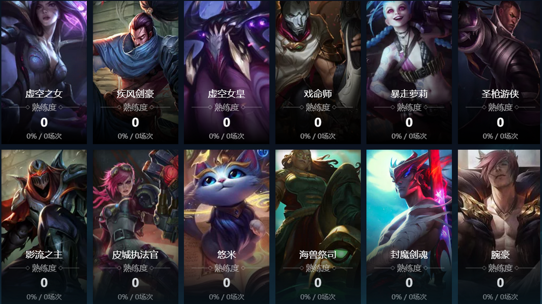 猩红收割者;发条魔灵;寒冰射手;皮城女警;迅捷斥候;战争女神;黑暗之女;卡牌大师;无极剑圣;众星之子;祖安怒兽;雪原双子;赏金猎人;武器大师;痛苦之拥;瘟疫之源;虚空恐惧;殇之木乃伊;祖安狂人;琴瑟仙女;熔岩巨兽;蜘蛛女皇;复仇焰魂;盲僧;沙漠死神;圣锤之毅;探险家;铁铠冥魂;德玛西亚之力;曙光女神;放逐之刃;光辉女郎;远古巫灵;九尾妖狐;北地之怒;战争之影;虚空掠夺者;诺克萨斯之手;皎月女神;暮光星灵;虚空之女;星籁歌姬;疾风剑豪;岩雀;祖安花火;暴走萝莉;破败之王;影流之主;时间刺客;唤潮鲛姬;魔法猫咪;逆羽;解脱者;万花通灵;血港鬼影;封魔剑魂 皮肤:奥德赛 崔斯特 炫彩皮肤:奥德赛 崔斯特 小小英雄:小河灵 棋盘皮肤:默认棋盘 进攻特效:默认 进攻特效