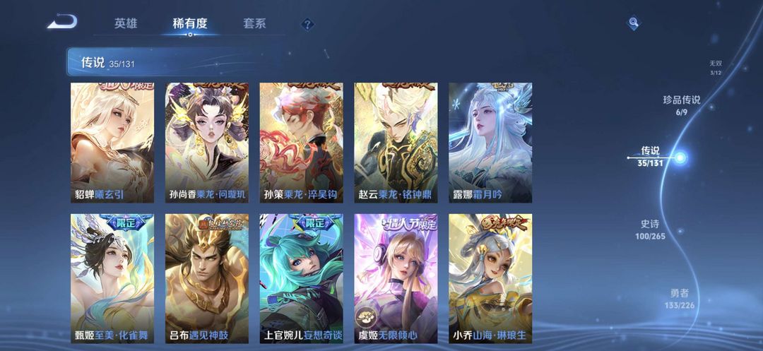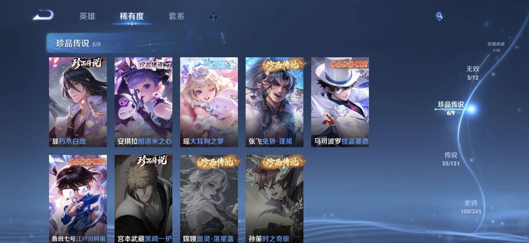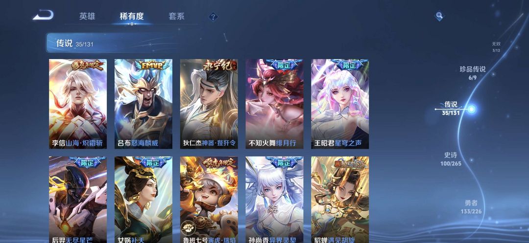 贵族九,皮肤大部分是限定的,高品质皮肤,荣耀,可排位,