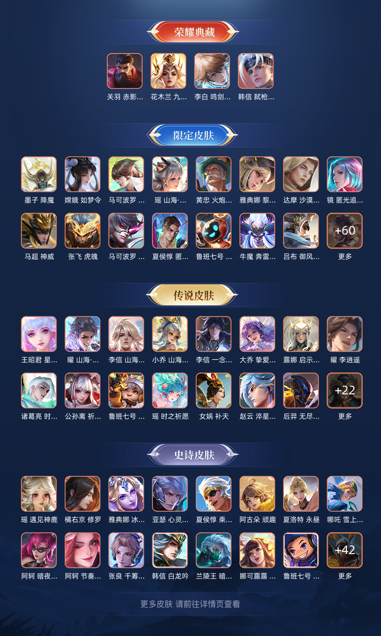 v9全英雄502皮肤64传说3星传说(宫本地狱之眼 猴子零号赤焰 狄仁杰超时空战队)拿别的号送的皮肤 要不然已经v10了 韩信关羽木兰李白典藏 马可珍品 基本每个英雄都有史诗及以上皮肤 没的只有个别几个 其他的看图 可以打排位 别花绑定点券 别骂人 别删好友 别改名 改了花了一律全平台拉黑