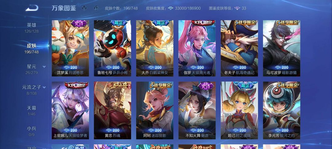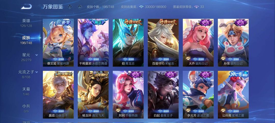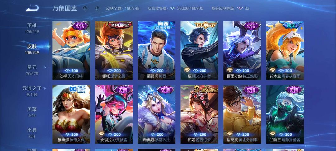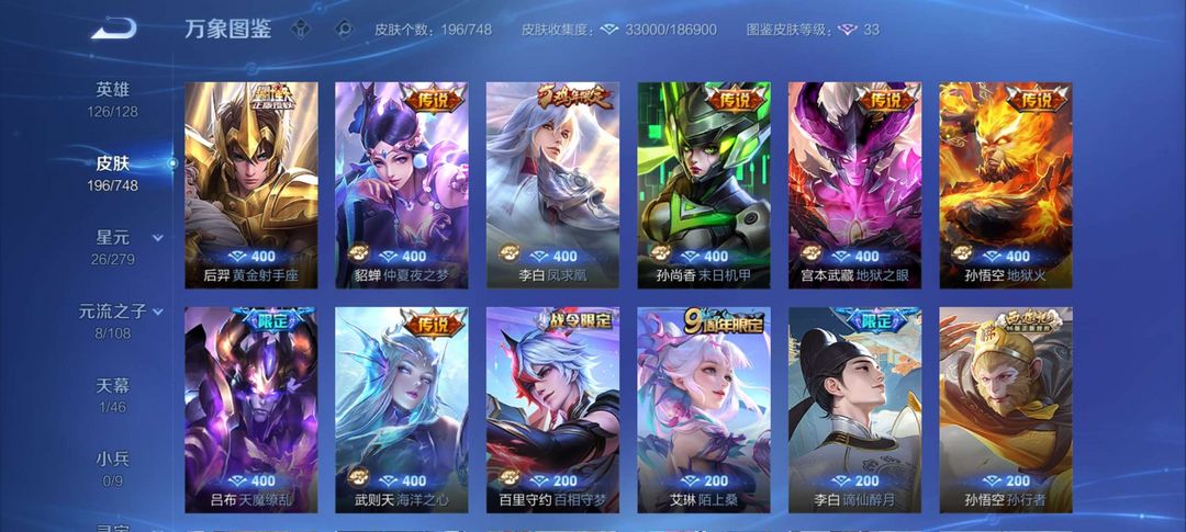 哪吒限定,干将限定,花木兰限定-飞冠-水晶,貂蝉限定-仲夏夜,关羽冰封战狼,赵云机车限定