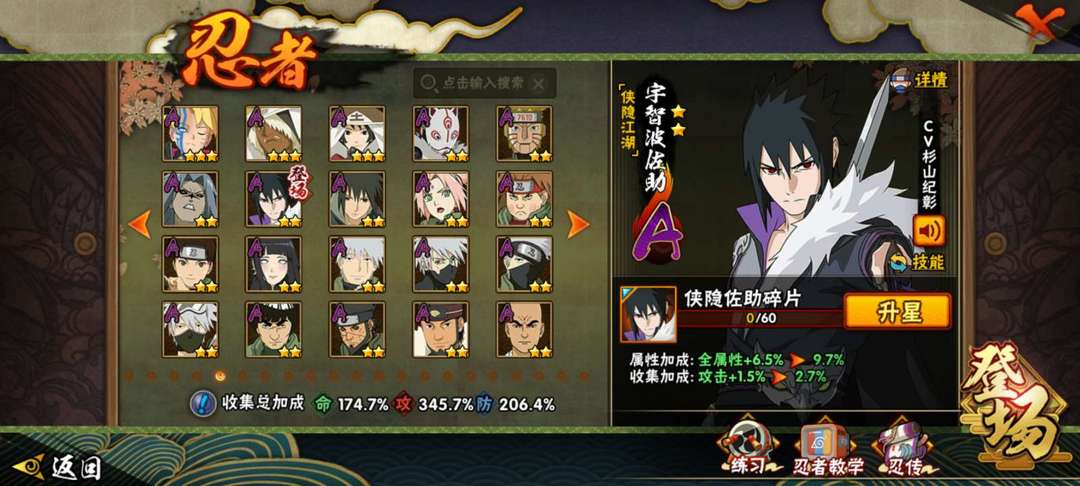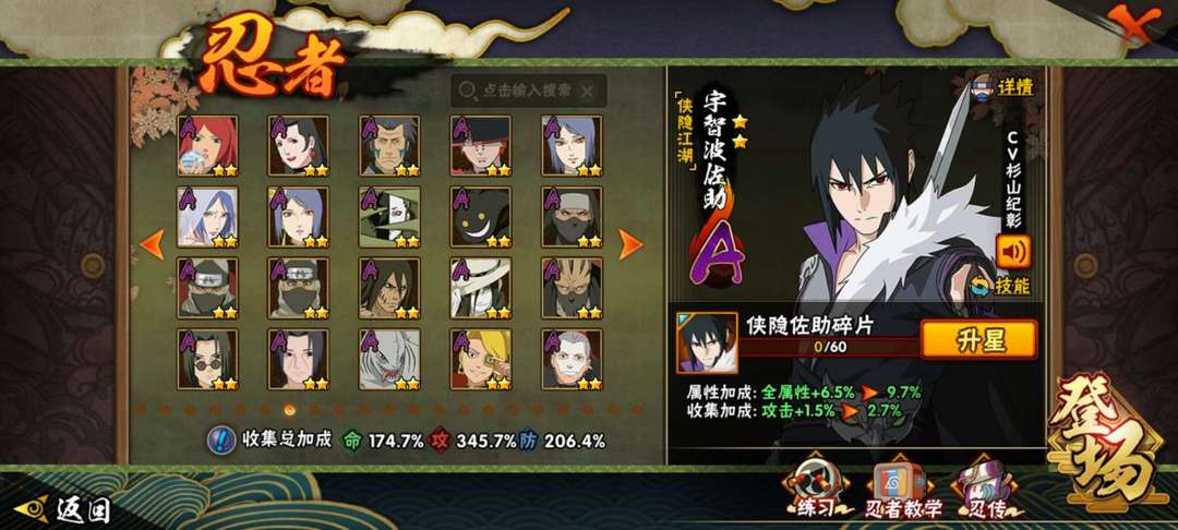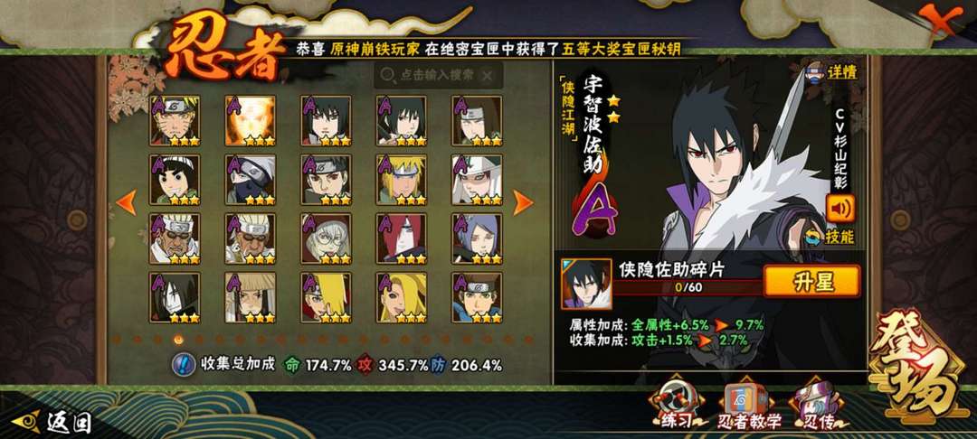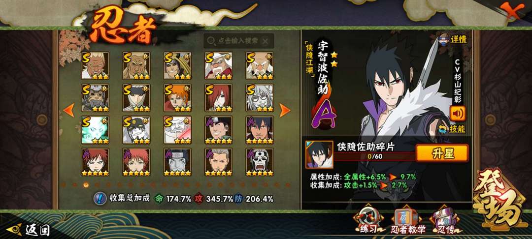 400忍者 3100w战力 53s 94A忍 侠影佐助 九喇嘛水门 漂泊系列全 所有点券A