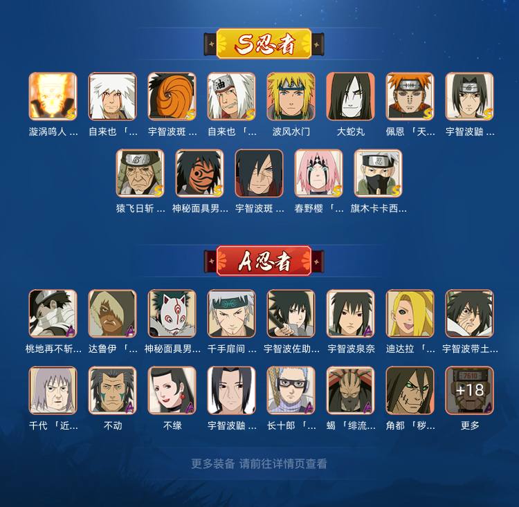 13个S,35个a,忍法有,无影会谈班,红叶面具男,充值忍者,面麻,漂泊扉间