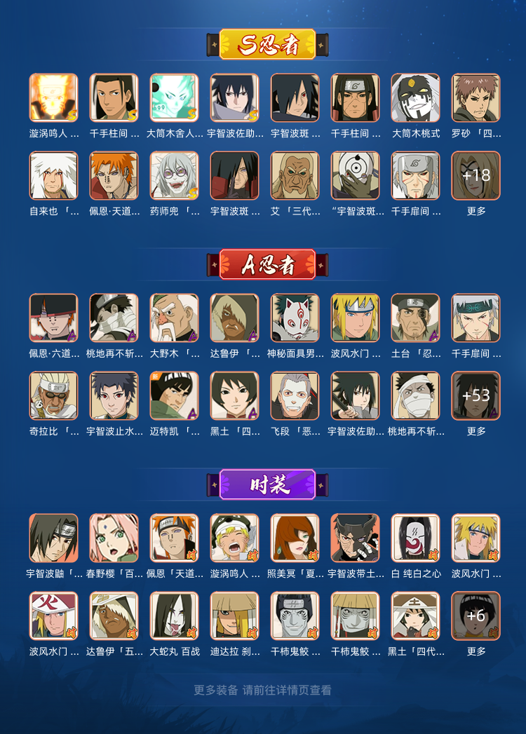 漂泊带土、漂泊小楠、漂泊再不斩、漂泊扉间、蝎晓创生、惊门凯、暴怒带土各种S和A