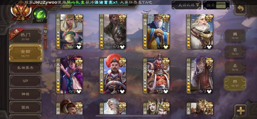 【有点将卡】二等大将军◆神司马懿◆回廊文鸯◆双形态界钟会◆十常侍◆炎龙动神甘宁60史诗杨彪界左慈祢衡