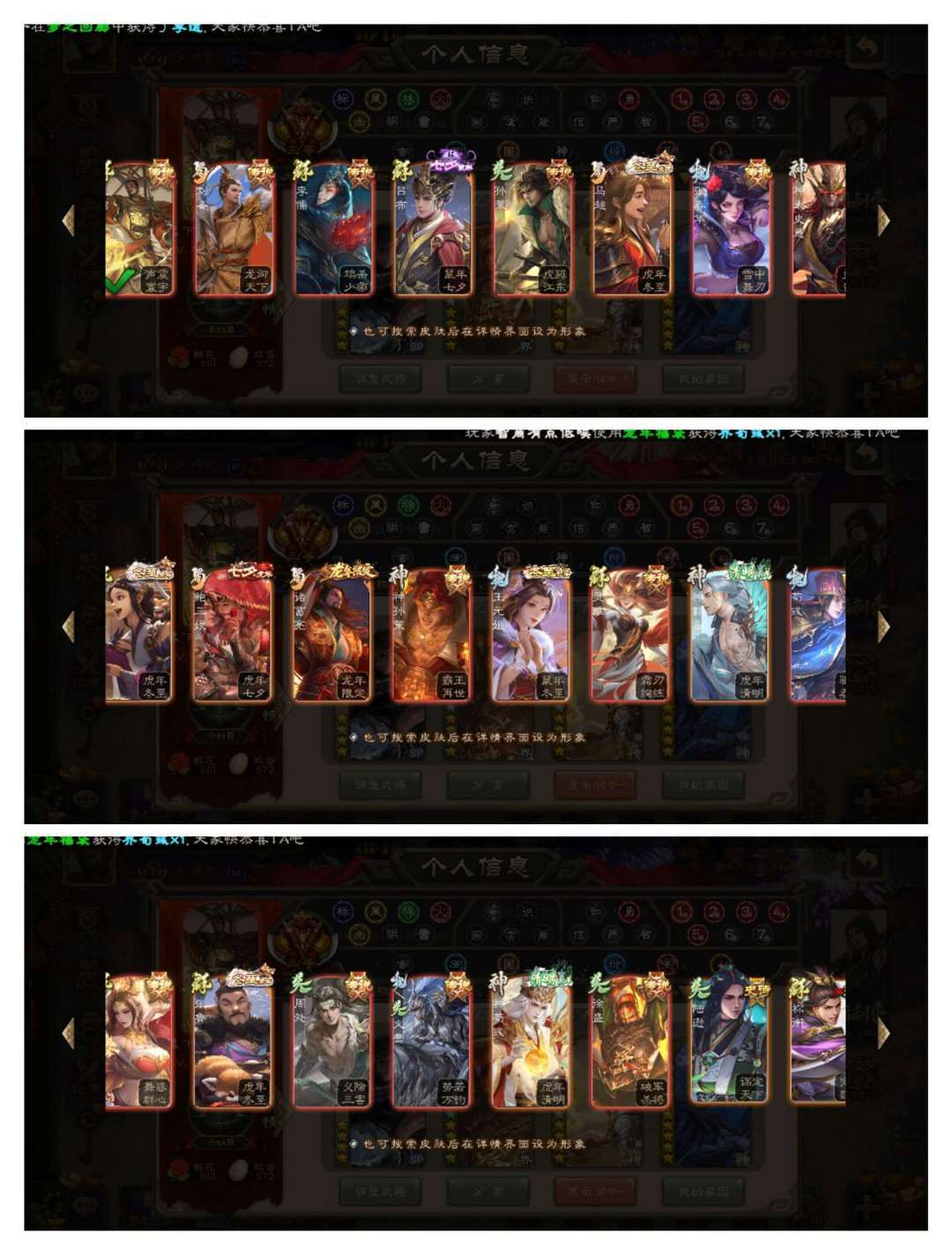 官方三等大将军,有卡,VIP10! 3五星炎龙:回廊双形态至臻动神郭嘉,动刘焉动神甘宁! 8四星玉龙:回廊双形态至臻动界钟会,回廊典藏动谋貂蝉,回廊动文鸯,回廊动神孙策,回廊动神太史慈,回廊动界徐盛,动神赵云,聚义! 47史诗武将:动留赞动王璨,金谋黄盖金界左慈,王元姬谋曹仁星甘宁南华老仙骆统周群周处,动谋大乔金张绣! 46动皮110金皮200国战皮肤!
